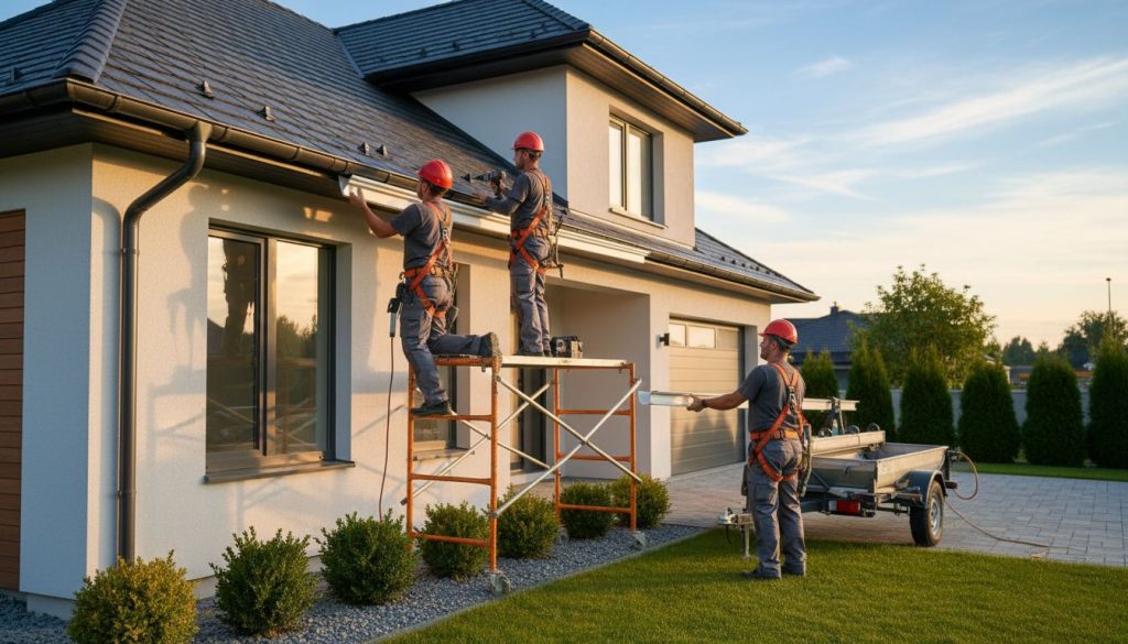 Ironclad Roofing & Exteriors begins gutter projects with a precise measurement of your roof’s perimeter and slope using laser‑guided tools. After a free on‑site quote, we schedule the installation at your convenience. Our technicians remove any existing gutters, repair fascia boards as needed, and install new seamless aluminum or copper systems with concealed brackets for a sleek look. We include downspout placement optimized for drainage toward approved discharge points, and we offer leaf‑guard options to reduce maintenance.